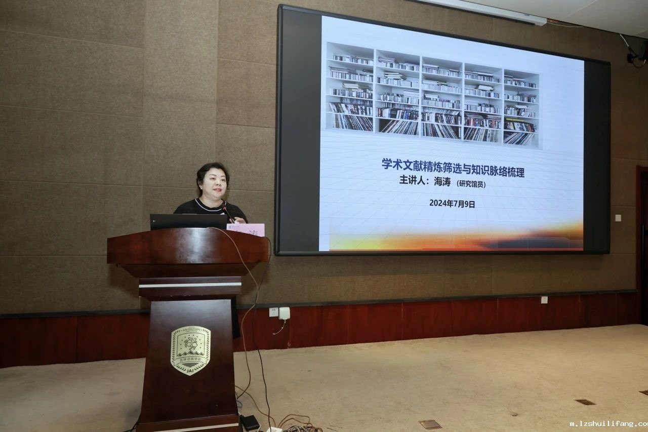 海涛以《助力科研·学术文献精炼筛选与知识脉络梳理》为题作专题讲座,介绍了我校图书馆所拥有的多元化、全面化、精准化的文献数据库。她表示,要学会借助学术辅助分析系统,辅助完成知识挖掘、数据分析、热点趋势研判等工作,根据需求实现快速检索获取资料,助力教学科研水平提升。